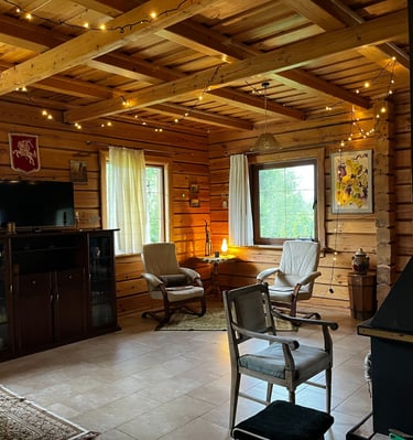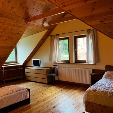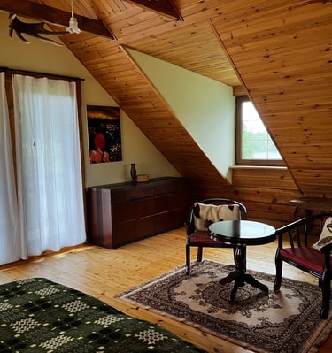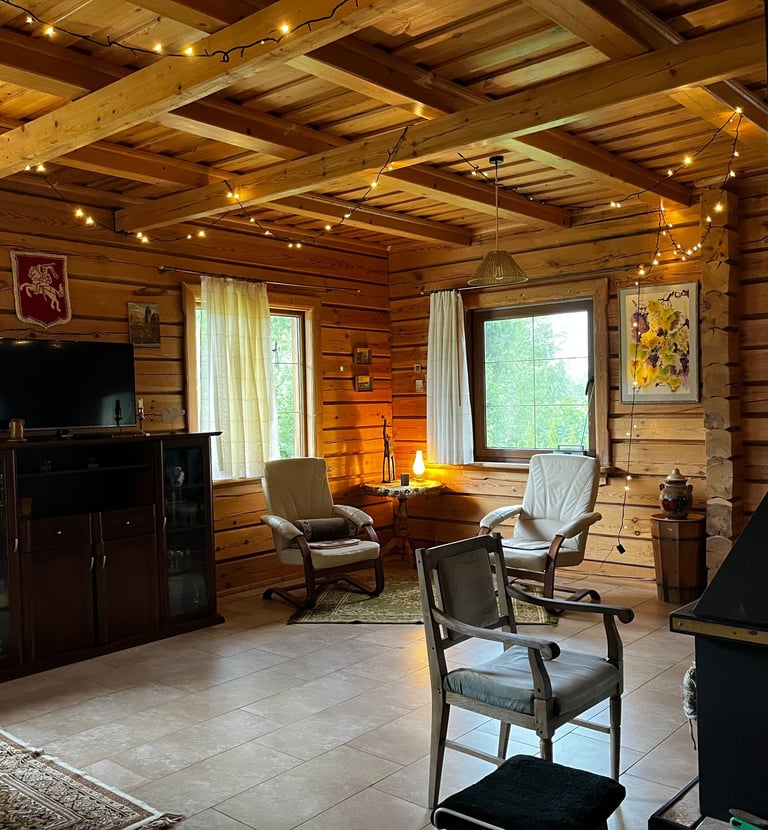 Mūsų senovinis medinis namas "Gintaras" talpina iki 12 asmenų, suteikdamas jaukumą ir harmoniją su gamta. Šis namas skirtas šeimai, ieškančiai ramybės ir bendravimo su artimaisiais. Galimybė pasimėgauti tyla ir gamtos grožiu. Čia rasite ramybę, kur galėsite atsipalaiduoti ir mėgautis kiekviena akimirka, o vakarais laukia jaukūs susibūrimai, šiltas pokalbis prie židinio ir džiaugsmas, būnant kartu su tais, kurie jums svarbiausi.